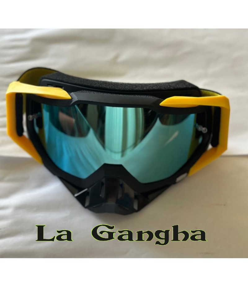 Gafas Moto Cross Negra Amarilla Pantalla Espejo.
